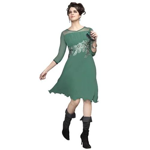 Wishes are delivered in the most stunning way by gifting this Fashionable Georgette Embroidered Kurti (Pastel Green) for lovely people in a lovely way. Size: Medium.