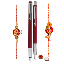Prayers for a good fortune for your dear ones and this gift of Pretty Parker Pen Set with 2 Free Rakhi for Auspicious Celebration along with a free Rakhi, Roli Tilak and Chawal sum up for a special and fantastic Raksha Bandhan. Alteration in the design may come up with this Rakhi.