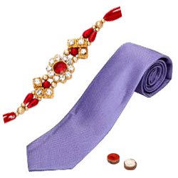 Add a magical charm to the festive mood of Raksha Bandhan by ordering online this Appealing Raymonds Tie Made of Silk with Rakhi whose beauty is elegantly amplified in the presence of a free Rakhi, Roli Tilak and Chawal.