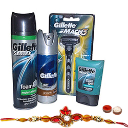 Pack of Shaving Razor, Foam, Deodrant and After Shave Gel from Gillette with 1 Free Rakhi.