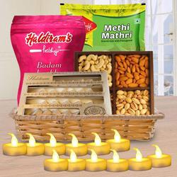 This gift box contains: � 2 Pcs Hot Chocolate Sticks (80g) � A Pack of Dark Chocolate Super Food Logs (90g) � 2 Pcs Zeal Bars (25g each) � A Pack of 60% Dark Chocolate Coated Almonds (50g) � A Pack of Healthy Trail Mix (50g) � A Pack of Vegan Hot Chocolate Mix (50g) � A Complimentary Diwali Card