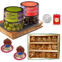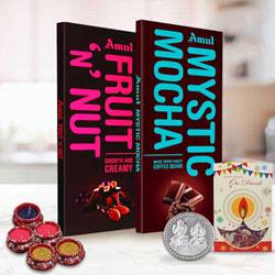 This gift box contains: � 1 Masala Cranberry Coco Delight Bar (20g) � 1 Fruit And Nut Chocolate Log (27g) � 1 Florentines Cookie (40g) � 6 Assorted Chocolates (13g Mint, 14g Coffee Soft Filled, 14g Orange Soft Filled, 12g Roasted Almond, 14g Cranberry, 12g Almond Rocks) � 1 Diya