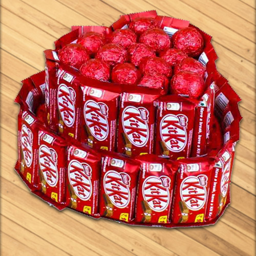 Bring the feeling of happiness by sending this amazing Heart Shape Arrangement of 35 pcs Nestle Kitkat (12.8 gms each) n Assorted Handmade Chocolates (150 gms) into the life of your most special person.