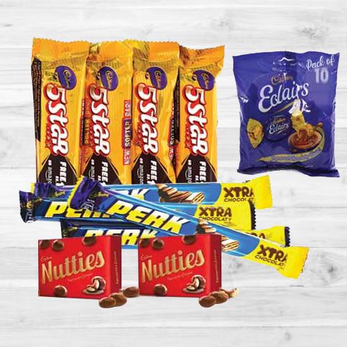 Order for delivery of Scintillating Gift Package to your special one. This amazing package is decked with 4 Cadbury Five Star, 4 Cadbury Perk, 10 Cadbury Eclairs, 2 Cadbury Nutties.