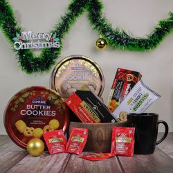 This delightful hamper brings together comfort and indulgence, combining a Cadbury Celebration pack (120.6 gm) with the richness of Lindt Excellence Chocolate (100 gm) and 24 pieces of home-made chocolates that add a homely charm. Complementing the sweetness is a Sapphire Cookies Tin (150 gm), perfect for snacking alongside the treats. A 6-inch teddy bear adds a cute and thoughtful touch, making it a hamper that feels personal. All these goodies are neatly placed in a small basket, ready to surprise and bring smiles to the one receiving it.