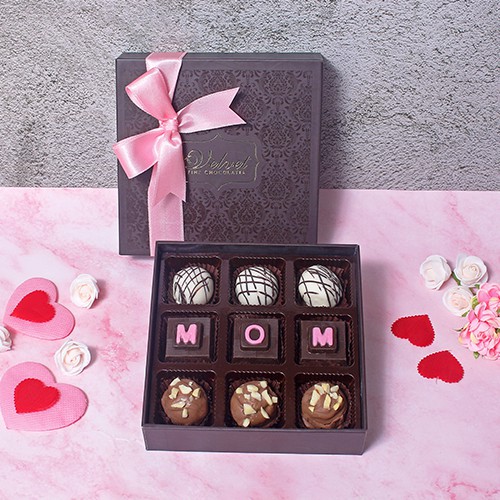 Order this Amazing Nine Assorted Mom Chocolate Gift Box far from miles away on this Mothers Day and make your mother smile