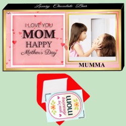Order this Scrumptious Chocolates Treats in Personalize Box far from miles away on this Mothers Day and make your mother smile. This is a gift of Premium 24 pieces Assorted Flavor chocolates with Personalized Name - Photo and Mothers day theme Digital Print On box and on Chocolates With Combo Greetings Card.