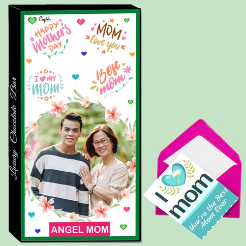 Present this Custom Mothers Day Flavored Chocolate Bar and let her relish the cheerful moments of your childhood on this day. This is a gift of Premium 100 Grams Assorted Flavor chocolate Bar with Personalized name - Photo N Mothers day Theme Digital Print Along with Greetings Card Combo.
