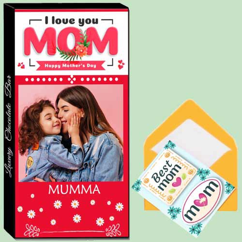 Amaze your mother by gifting her this Mothers Day Theme Digital Print Chocolate and make her crave for more This is a gift of Premium 100 Grams Assorted Flavor chocolate Bar with Personalized name - Photo N Mothers day Theme Digital Print Along with Greetings Card Combo.