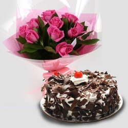Charming 12 Pink Roses with 1/2 Kg Black...