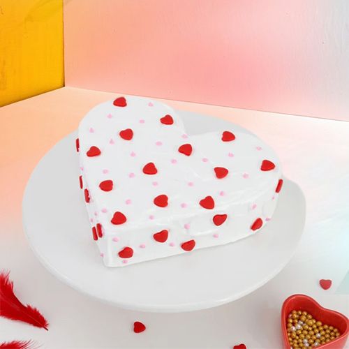 Imagine a gift as sweet as the feelings it conveys, our Red Velvet Love Cake is just that! This eggless heart-shaped chocolate cake is a true masterpiece, crafted to bring smiles to faces. Topped with charming little red hearts, it�s the ideal way to send love and happiness in edible form. As you slice through, the rich, moist chocolate cake promises an unforgettable taste that melts in your mouth. Suitable for vegetarians and those who prefer eggless options, this cake is universally appealing. Whether for anniversaries, birthdays, or a romantic surprise, its a thoughtful gesture wrapped in a delicious dessert. At 1 lb, its the perfect size for intimate gatherings or personal indulgence.