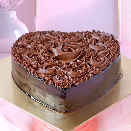 Indulge in the decadent delight of our Love-Inspired Chocolate Delight, a masterpiece for every chocolate enthusiast. Crafted with premium quality ingredients, this luscious cake boasts a moist, velvety crumb thats incredibly satisfying. Its heart shape makes it more than just a dessert; it�s a token of love and affection. Perfect for any occasion from romantic dates to heartfelt apologies or festive celebrations. The rich chocolate flavor offers an unparalleled tasting experience, capturing the essence of true chocolate indulgence. Without eggs, it maintains its soft, fluffy texture, proving that sometimes, less is more. Each bite brings a burst of chocolate richness, balanced with smooth ganache that envelopes the cake. Share it with loved ones or indulge in a personal treat; this cake complements any gathering. Purely vegetarian and passionately made, this cake is a confectionery dream come true. The Love-Inspired Chocolate Delight - a dessert that expresses, �I care.�