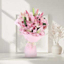 4pcs Pink Asiatic Lily Hand Tied Bunch
