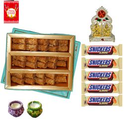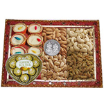 250 Gms. Ladoo from Haldiram in a Gold Plated Thali with Free Silver Plated Lakshmi Ganesh Coin. Note: Gross Weight applies for Sweets. Thali Size: 5"-6" inch.(Weights are Gross Weight)