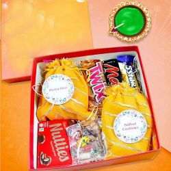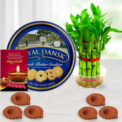 Surprise your near and dear ones on this Diwali by sending this Festive Gift Combo with Best Wishes and make them happy. This Gift Combo contains 4Pcs Ferrero Rocher Chocolates, Royal Dansk Butter Cookies (400Gms), Wax Diyas (6Pcs), a 3 pcs Subh Labh Banderwal Set. (Please note: Subh Labh Banderwal Set image may vary as per product availability)