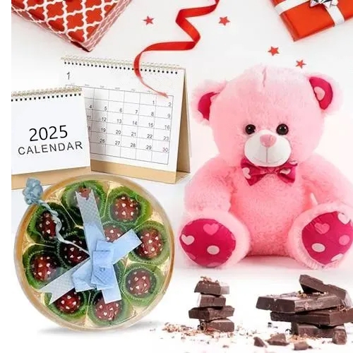 Convey your heartfelt wishes by gifting this Happy New Year 2 line SMS Chocolate with Desk Calender to the people dearest to you on this occasion.