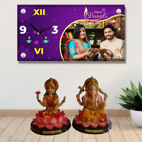Tether your loved ones to your heart by sending this Radiant Personalized Gift of Sublimation Glass Clock (30 x 16 cm) n Ganesh Laxmi Idol and surprise them with your special gesture on Diwali.