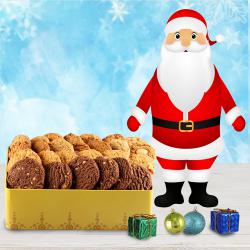 Tighten the bonds of your relationship by ordering online this Stunning Xmas Cookie Delight with Santa Cushion for your loved ones and give them a reason to love you more. This Cookie Assortment consists of Double Choc Chip Cookie (250g) n Pack of 2 Choc Chunk Cookie (120g each).