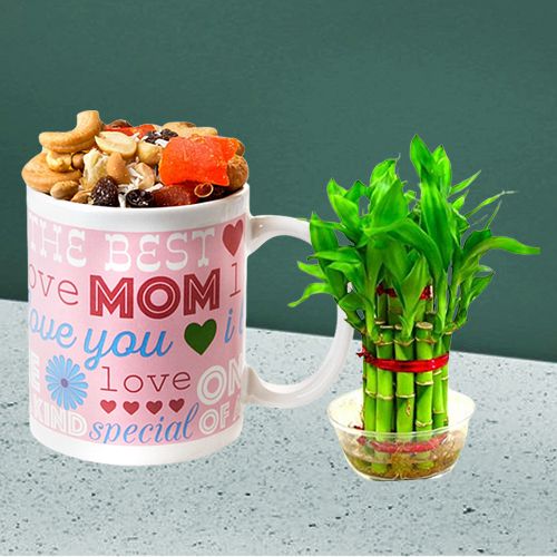 Make the moments memorable for your mother by presenting this Stunning Personalized Mug loaded with 200gm Mixed Nuts n 2 Tier Lucky Bamboo Tree that will shower her blessings upon you on this Mothers Day.