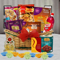 Render happy moments with this Super-tasty Tart Baklava N Cadbury Silk and frame it forever in your memory. This Diwali Gift Basket includes- 1. Tart Baklava(250 gm) 2. Free Silver Plated Ganesh Laxmi Coin 3. Cadbury Silk Chocolate Bar (60g) 4. Lotus Tea Light Candle Holder 5. Fancy Shubh Labh Wall Sticker 6. 100 g Cashews Potli 7. In a Decorative Basket 8. Free Diwali Card