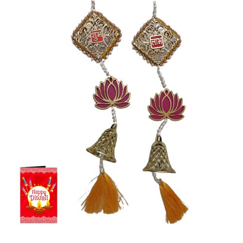 Impress your dear ones by sending this Auspicious Festive Shubh Labh Toran of 2pcs with A Free Diwali Wishing Card and elegantly brighten up their mood instantly.