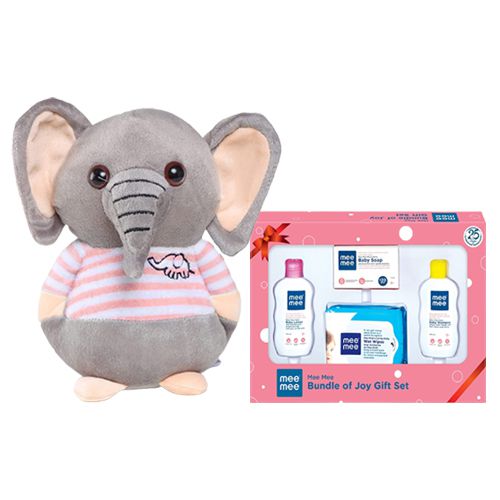 Send your lovely wishes by gifting this Adorable Elephant Stuffed Toy N Mee Mee Baby Care Gift Set to your dear ones. Product Details: 1. Product Content - Elephant Soft Toy (20cm) N Mee Mee Bundle of Joy Gift Set 2. Soft Toy Material - Polypropylene 3. Soft Toy Theme - Animal 4. Recommended Age - 18 months to 6 yrs 5. Country of Origin - India