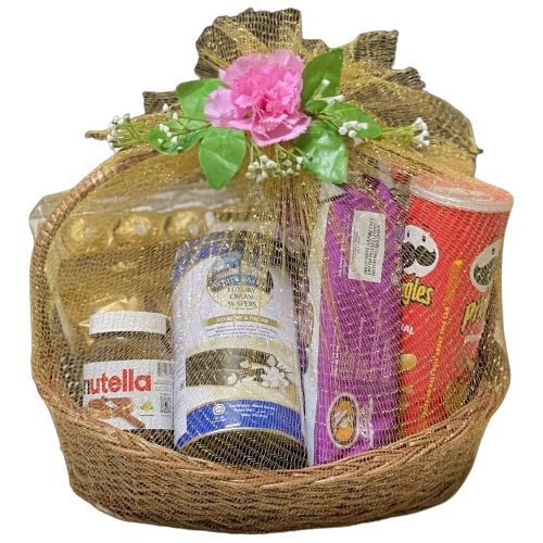 Now you can send online this Marvelous Birthday Gift Basket of Snacks N Savory and spread warm love to others. This decorative gift basket contains - 1. 24pc Ferrero Rocher Chocolates 2. Nutella Choco Spread 3. White Castle Rolled Wafer Tin 4. Pringle Chips 5. European Cookies 6. A Reusable Cane Basket