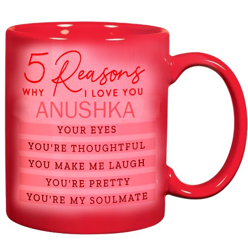 Convey your deepest feelings to your loved ones in life with this beautiful gift of Amazing 5 Reasons to Love You Customized Coffee Mug which will tie the strings attached to your hearts stronger. Personalized coffee mug for your beloved with your own reasons to love on Valentines Day