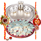 Silver Plated Rakhi Pooja Thali with Ganesh Laxmi Idol