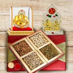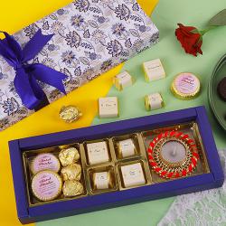 The Gifts consists of: 6 Assorted chocolates (orange crisp, roasted almond, oreo, butterscotch), 1 almond chocolate finger, 1 almond florentine cookie, 1 bottle piri piri trail mix (80 gms), 1 bottle salted cashews(110 gms), 1 bottle masala nuts(110 gms).