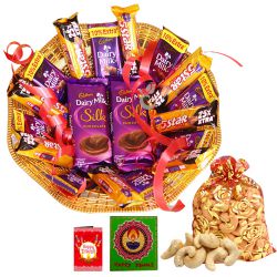 To enhance the aesthetic appeal, all the items are elegantly arranged in a designer tray, adding a touch of elegance to any Diwali celebration. This hamper makes for a thoughtful and convenient gift option, taking away the hassle of selecting individual items.