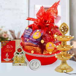 The Diwali Hamper consists of: � Diya � Three Tier Lucky Bamboo Plant with Pot � Cadbury Dairy Milk SIlk Chocolate Bar (Roast Almond 36g) � A Free Message Card