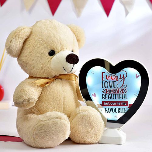 This gift hamper contains: � 12 inch Teddy Bear � Magic Mirror with Customised Message