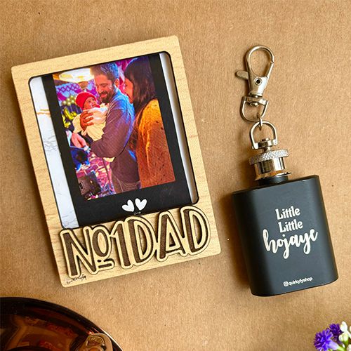 Introducing our Stunning Customized Frame N Hip Flask Combo - the perfect keepsake pair for cherishing special memories on the go. This delightful gift set includes a Personalized Photo Frame Magnet and a Compact Hip Flask Keychain (30 ml), thoughtfully designed to bring a touch of sentimentality to everyday moments. The Personalized Photo Frame Magnet allows you to showcase a cherished photo in a unique and practical way, while the sleek Hip Flask Keychain adds a touch of sophistication to your accessories. Whether youre looking to preserve a precious memory or simply enjoy a quick sip of your favorite drink while out and about, this Customized Memory Duo is sure to bring joy and functionality to your day. Treat yourself or a loved one to this special set and treasure memories in style.