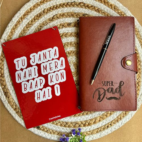 Embark on new journeys and document your adventures with the Fathers Day Special Gifts Bundle. This chic travel journal and stylish metal pen are the perfect companions for wanderers and explorers alike. The faux leather journal provides a luxurious touch, while the metal pen ensures smooth writing as you pen down your dads thoughts and memories. The set is beautifully complemented by a quirky door sign, adding a touch of whimsy to your space. Whether he is a seasoned traveler or just starting out on your exploration journey, this gift set is sure to inspire your wanderlust and spark your creativity. Treat yourself or surprise a loved one with this thoughtful set that is perfect for capturing all your travel experiences in style.