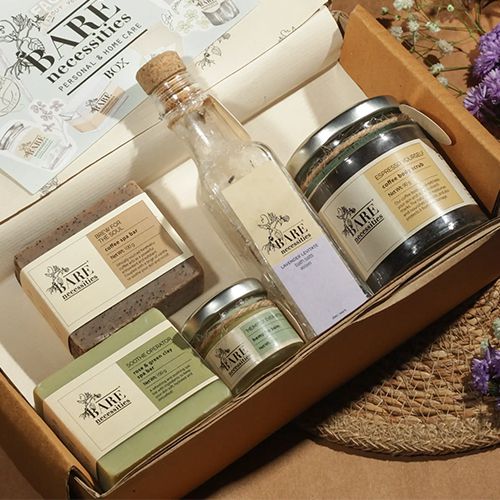 This gift hamper contains: � Espresso Yourself Coffee Body Scrub � Lavender Levitate Bath Salt � Mason N Co. Lip Balm � Soothe Operator - Green Clay Soap � Brew For The Soul - Coffee Soap