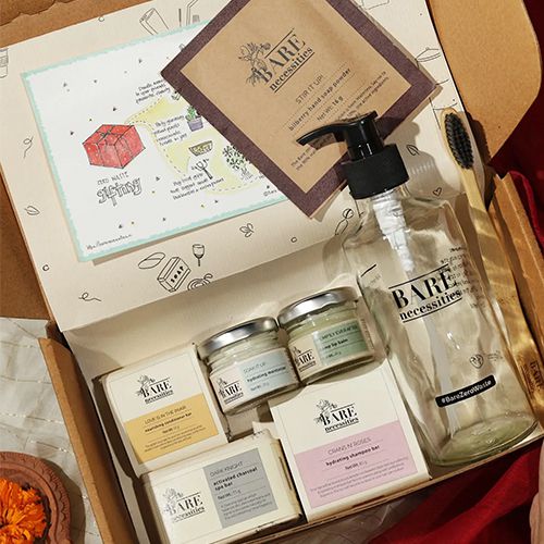 This gift hamper contains: � Dark Knight - Activated Charcoal Soap � Crans N Roses Shampoo Bar � Busy Bee Organic Honey Vanilla Lip Balm � A Natural Plant based Conditioner Bar - Hydrating and Nutrient-rich � Stir It Up - Handwash Powder Refill Pack with Bottle � A Compostable Bamboo Toothbrush � Soak It Up Natural Hydrating Moisturiser - Small