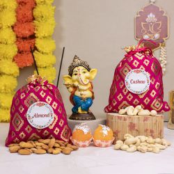This gift set includes: � Mukut Ganesh � Ferrero Rocher Chocolate (50g) � Almond (100g)
