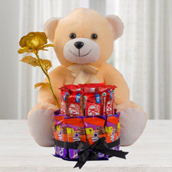 In addition, include this Eye-Catching Single Rose in Golden Colour with the selected gifts.