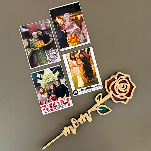 Transport your mom to a place of cherished memories and sweet emotions with our Special Song Magnets for Mom. This collection isnt just an ordinary gift�its a journey through your shared moments, captured creatively through four personalized Polaroid magnets. These little treasures are highlighted with the soothing notes of a default Spotify MOM special song, creating an ambiance of love and connection. Accompanying this melodic trip down memory lane is an elegant Rose Magnet, a constant reminder of her beauty and strength. This gift set is a perfect reminder of all the special times youve shared, offering a sentimental experience that shell hold dear forever. Whether youre marking a notable day in her life or adding a sparkle to a regular one, this gift set delivers love and appreciation right to her door. Fill her heart with joy and let her know shes always in your thoughts with the Cherished Moments Gift Set.