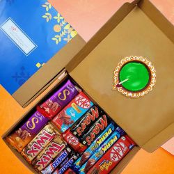 This Wholesome Festive Treat Gift Box is perfect for the festive season! It houses a luxurious body wash and lotion to refresh your senses, alongside Khatta Mitha and millets snacks for a unique taste experience. Indulge in delicious cracker-shaped chocolates while celebrating with a thoughtfully included Diwali card, all neatly presented in a charming MDF tray.