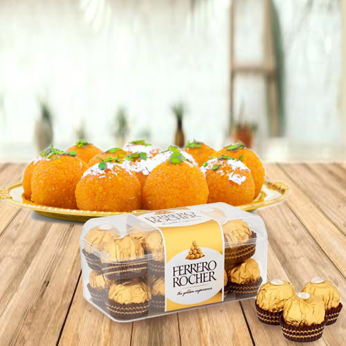 It Contains Ladoo 500gms (gross weight) with 16 pcs Ferrero Rocher