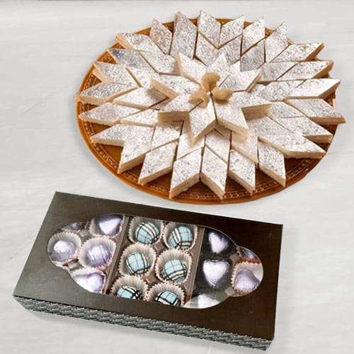 Send this 18 pc Homemade Chocolates pack with 500 gr Haldirams Kaju Katli gift combo to the ones you care for dearly and put radiant smiles on their faces to last for a long time.