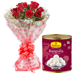 Combo of Pink Roses and Haldiram Rasgull...