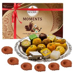 Create magical moments by ordering online this Exclusive Rubber Plant n Assortments Gift Combo for your loved ones and spread your warm feelings into their hearts on this Diwali. This Combo arrives with- 1. Air Purifying Rubber Plant 2. 16 pcs Ferrero Rocher Chocolates Box 3. Decorated Ganesh Laxmi Idol 4. 200 gm Boondi Ladoo 5. 6 pcs Mud Diya