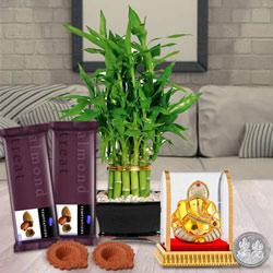 Make occasions grander with this Mesmerizing Eco Friendly Combo Gift and share the moment with your loved ones on this Diwali. This Combo comes with Money Plant in a Glass Vase with 1 decorated Vighnesh Ganesh Murti in a transparent case, Cadbury Celebrations Pack (126 gm) and free 6 pcs Mud Diya.