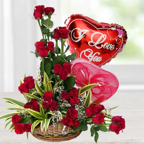 Express your sweetest sentiments and sensible feelings to your loved ones with this Elegant Gift of 30 Red Rose Bunch with a Heart Shape Balloon as a token of love on Valentines Day.