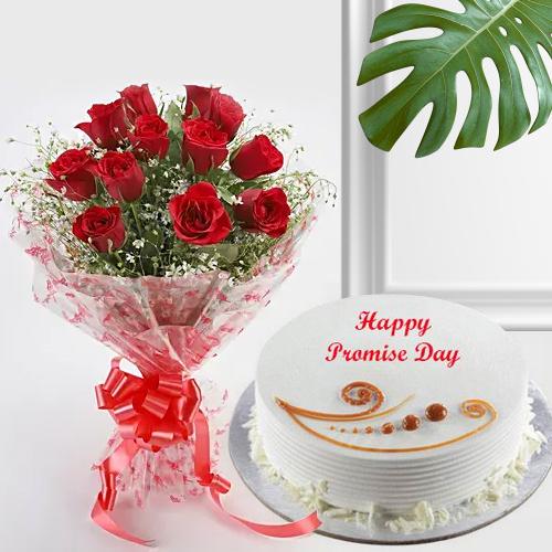 Sparkle your love on Valentines Week with this Exquisite Bouquet of 12 Pink Roses with Happy Promise Day Vanilla Cake (1 lb) and stay forever in the hearts of the people closest to you.