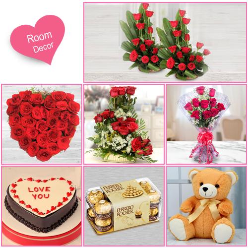 Make your Valentines Day celebration a joyous one with this gift of Mind-Blowing Love Hamper for Your Valentine and carve a perfect way to celebrate the most sacred feeling called love. This valentine Gift collection adorned with: - 15 Red Roses Arrangement � 2 - 36 Red Rose Heart Shape Arrangement � 1 - 24 Red Rose Arrangement � 1 - 10 Red Rose Bouquet � 1 - Heart Shape Cake (1 Lb) - 16 pcs Ferrero Rocher Chocolate and - 12 inch Soft Teddy.