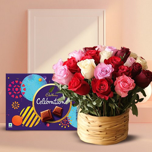 Rejoice your lovely memories of togetherness on Valentines Day with this gift of Amazing 30 Mixed Roses Arrangement with Cadbury Celebrations Assorted Chocolate Pack (180.8g) which will give a perfect touch to your emotions.